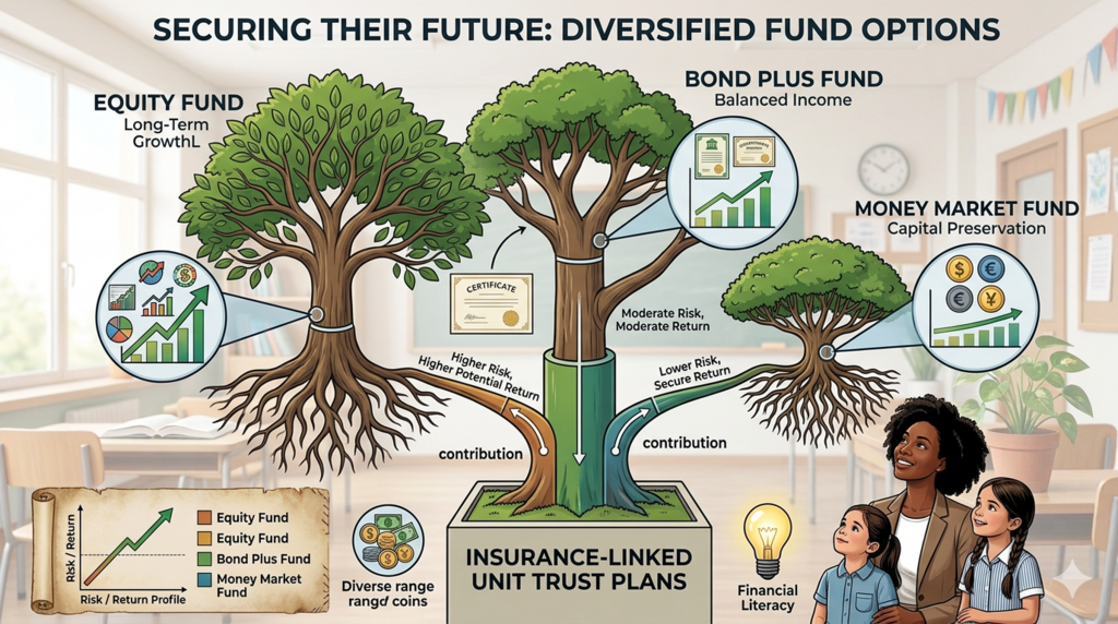 The "secret sauce" of insurance investments is the guaranteed return and premium waivers. Unlike a standard investment, if the worst happens, the insurance component ensures your investment goal (like a child’s university fund) is still met.